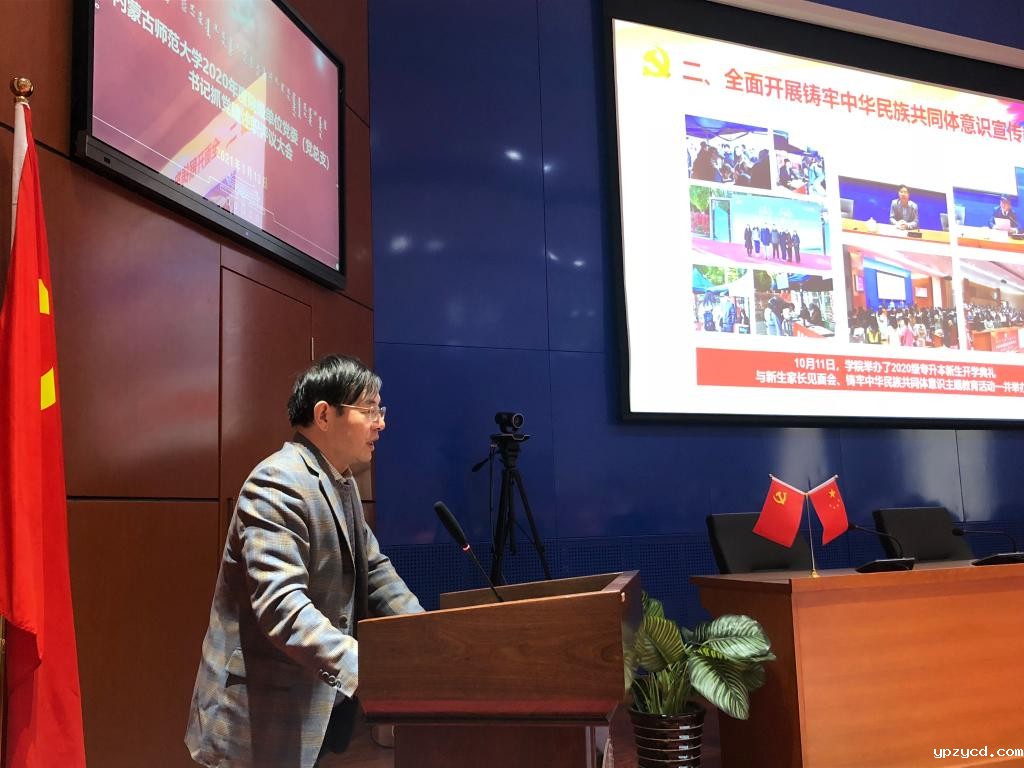 1月13日,校党委副书记、校长阿拉坦仓主持召开学校党建工作扩大会暨2020年度院级单位党委(党总支)书记抓党建工作述职评议大会。校党委副书记高云峰,副校长张海峰、刘九万、王来喜,纪委书记、监察专员连慧文,党委委员、组织部长褚亚申,党群各部门负责同志,各院级单位党委(党总支)书记、院长、副书记以及熟悉了解基层党建工作的“两代表一委员”和党员干部群众代表110余人参加了会议。会上,党政机关党委等38个院级单位党委(党总支)书记围绕学习宣传贯彻落实党的十九届五中全会精神和习近平总书记关于民族工作的重要论述情况、抓基层党建工作重点任务落实情况、履行党建工作责任情况、推进事业发展情况、上一年度党建述职指出问题整改落实情况、党建工作存在的突出问题与改进思路措施等六个方面进行了工作述职。听取述职后,阿拉坦仓代表校党委进行点评,在肯定成绩的同时,指出了学校基层党建工作存在的问题和不足,并就进一步加强和改进学校党建工作提出了意见。
