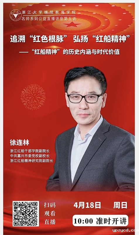 为助力高标准高质量开展党史学习教育,4月18日上午,继续教育学院党总支和浙江大学继续教育学院党总支通过网络直播的方式,听取了“追溯‘红色根脉’,弘扬‘红船精神’---‘红船精神的历史内涵与时代价值’”党史学习报告。报告会由浙江大学继续教育学院举办,我院组织全体教工党员和学生党员收看了报告会。