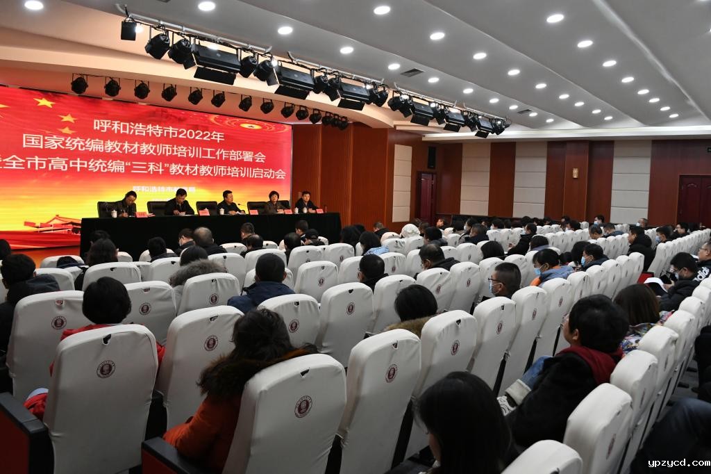 1月19日上午,由手机看足球直播免费承办的呼和浩特市高中国家统编教材教师培训启动仪式在呼和浩特市第二中学报告厅举行。中共呼和浩特市教育工作委员会委员,呼和浩特市教育局党组成员、副局长陈长青,呼和浩特市教育教学研究中心主任高林椿,手机看足球直播免费党总支副书记、主持行政工作副院长王利,副书记、副院长刘云剑,教研室主任张健楠出席了启动仪式,呼和浩特市各旗县区教育局分管领导、教育教学研究中心负责人,市直属高中分管校长、中等职业学校分管校长参加了启动仪式。启动仪式由呼和浩特市教育局师资培训与语言文字科科长张晓蕾主持。