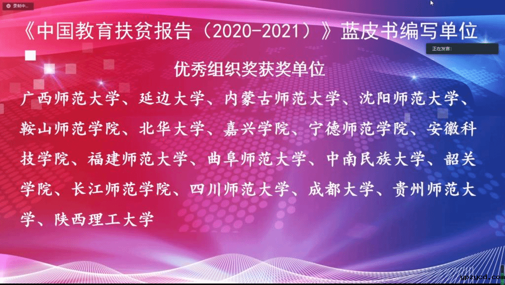 本次会议在河南、贵州、广东、广西、四川、湖南、湖北、河北等十五个省份设分会场,其中我校设立了分会场。我校党委书记阿拉坦仓受邀线上参会并作主旨报告。阿拉坦仓指出,2022年是党的二十大召开之年,也是实现巩固拓展脱贫攻坚成果同乡村振兴战略有效衔接的关键之年,启动《中国教育发展与乡村振兴报告》蓝皮书的编纂工作正当其时、意义重大。作为内蒙古自治区重点大学和师范教育的龙头,我校将一如既往强化政治担当、发挥自身优势,努力在推进巩固拓展教育脱贫攻坚成果同乡村振兴有效衔接中发挥基础性、先导性作用,促进自治区教育优质均衡发展。阿拉坦仓表示,我校负责撰写该蓝皮书第二部分专题篇中的《呼和浩特市新城区教育扶贫纪实》,能够继续承担《中国教育发展与乡村振兴报告》编纂工作,体现了教育部及各位同仁对我校的充分信任,我校将把蓝皮书的编纂工作作为一项重大政治任务予以高度重视,全力以赴,优质高效完成编纂任务。本次发布会上,我校还荣获了“优秀组织奖”。