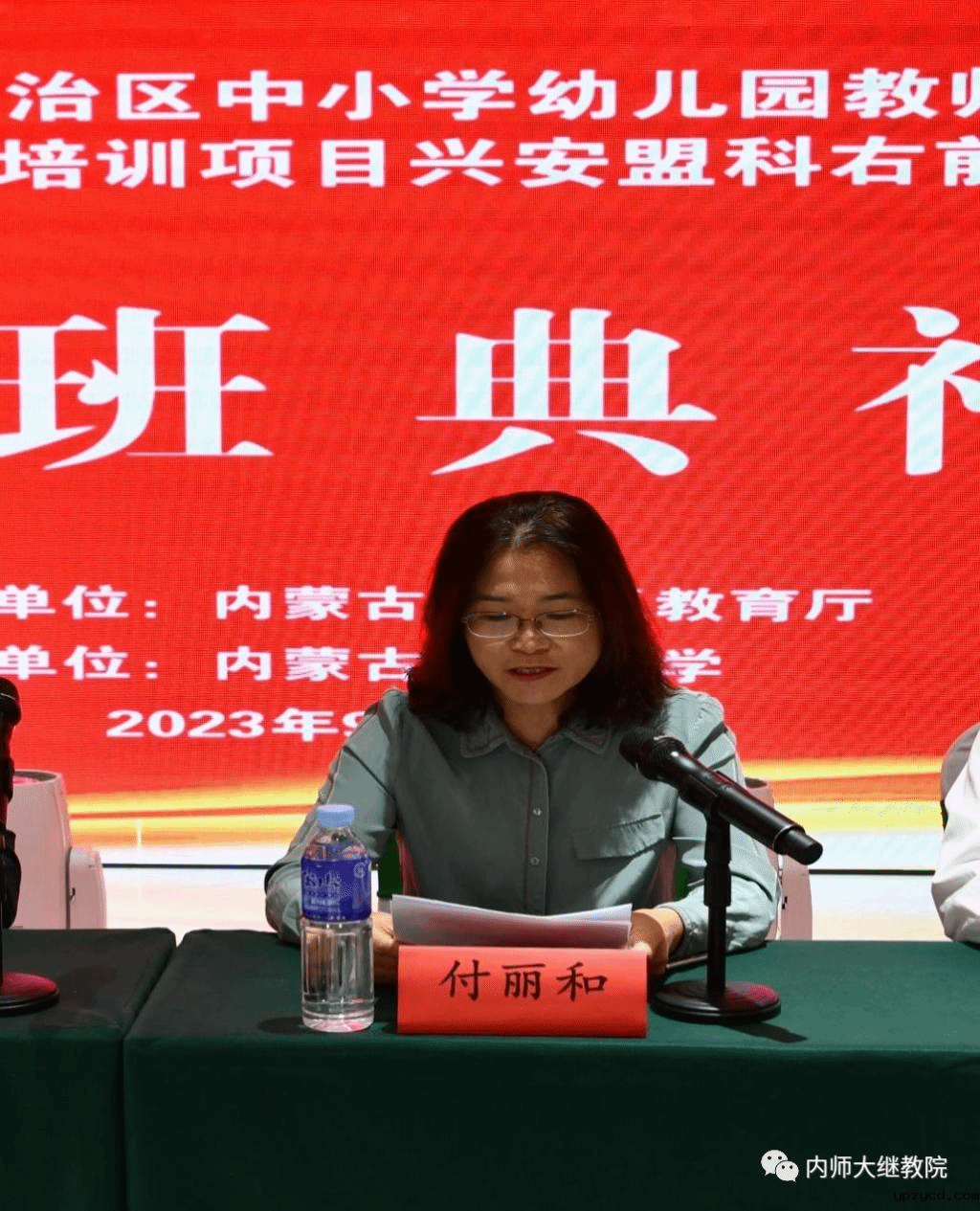 清风送爽,硕果飘香。9月17日上午,我校助力乡村振兴项目——“国培计划(2022)”内蒙古自治区欠发达地区农村学校“一对一”精准帮扶兴安盟科右前旗小学骨干教师培训在维也纳大酒店举行了开班仪式。本项目由自治区教育厅主办、世界杯在线直播网站承办、继续教育学院具体组织实施。兴安盟科右前旗教育局党组成员、副局长张静媛,我校继续教育学院副院长付丽和、高师培训中心主任高丽桃、培训部副主任陈毕力格、培训部教师薛佳琦以及科右前旗300位小学语文、数学、英语、道德与法治4个学科的骨干教师参加了开班仪式。