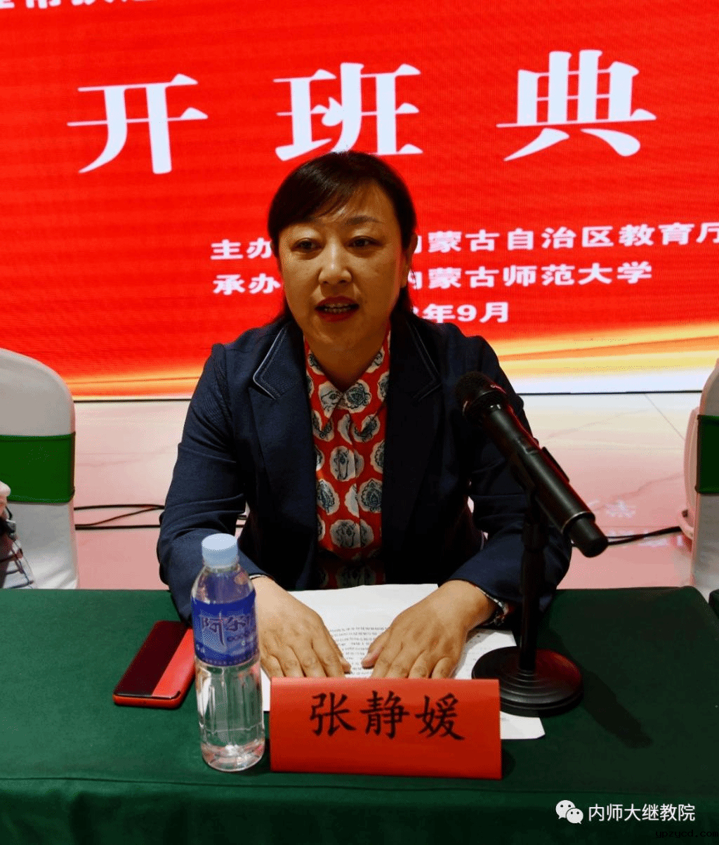 付丽和副院长对我校本次助力乡村振兴项目——“国培计划”内蒙古自治区欠发达地区农村学校“一对一”精准帮扶培训项目的重要意义、培训背景、培训内容、培训形式、专家安排及前期调研等做了详细的介绍,并对学员提出了三点希望。第一,转变角色,全心投入。希望各位学员积极转变角色,严格遵守培训纪律和要求,全心主动投入学习,切实提升培训的收获感和责任感。第二,积极参与,勤学深思。希望各位学员紧密结合个人教学实际,带着问题学,多思考、多交流、勤学善思,取长补短,不断提升个人的专业素养和教育教学能力。第三,积极转化,善于迁移。希望各位学员培训结束后,把培训所学、培训所得真正运用到教育教学的实践中,提质增效,为促进自治区基础教育的高质量发展做出积极贡献。