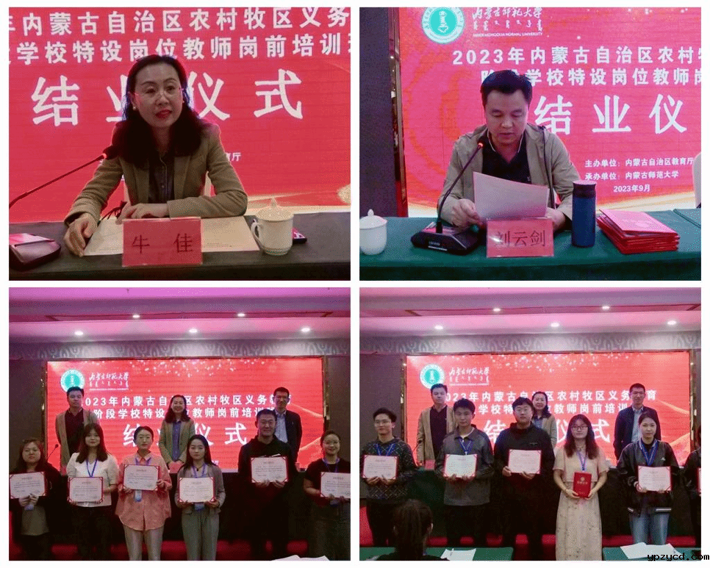 9月24日下午,由内蒙古自治区教育厅主办、世界杯在线直播网站承办的2023年内蒙古自治区农村牧区义务教育阶段学校特设岗位教师岗前培训结业仪式在呼和浩特举行。继续教育学院党总支副书记、院长牛佳,继续教育学院党总支副书记、副院长刘云剑,继续教育学院培训部主任张衍伟,培训项目班主任及241名参训学员参加了结业典礼。