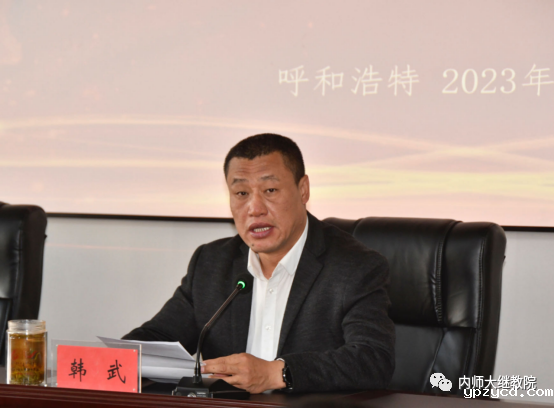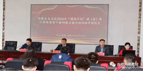 为进一步提高内蒙古自治区旗(县)级小学体育教师的专业水平,助力我区乡村教育振兴,由我校承办的“国培计划(2023)”—内蒙古自治区旗(县)级中小学紧缺学科骨干教师(小学体育)培训于10月15日在我校体育学院二楼多媒体会议室开班。体育学院党委书记韩武,体育学院副院长、项目负责人兼首席专家李凤新,继续教育学院党总支副书记、副院长刘云剑,培训班班主任及97名参训教师参加开班仪式。