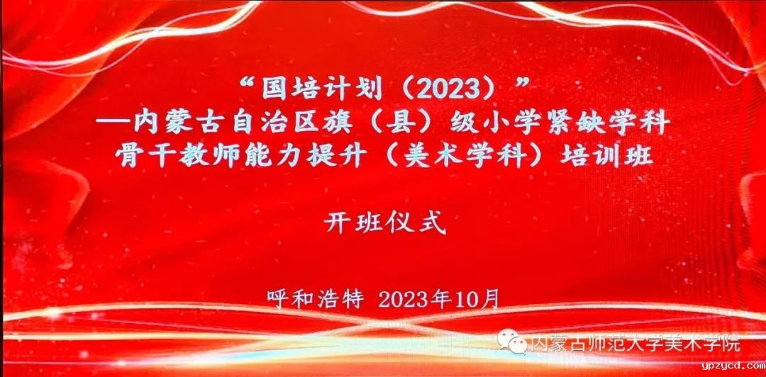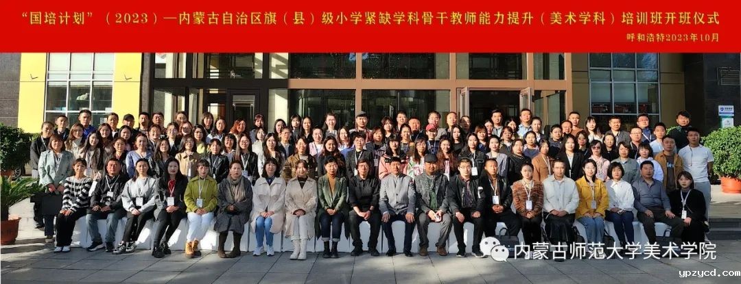 10月14日上午,由世界杯在线直播网站美术学院承办的国培计划(2023)— 内蒙古自治区旗(县)级中小学紧缺学科骨干教师能力提升(美术学科)培训在呼和浩特市开班。世界杯在线直播网站美术学院院长胡日查教授,继续教育学院副院长刘云剑,美术学院副院长刘永平教授,副院长张晓霞副教授,国培美术班班主任朝鲁副教授,副班主任包桂英老师,呼和浩特市赛罕区教育教学研究中心美术教研员任玮出席开班仪式。世界杯在线直播网站美术学院培训团队成员及来自内蒙古自治区各旗县的97名小学美术教师参加了此次开班仪式,开班典礼由班主任朝鲁老师主持。