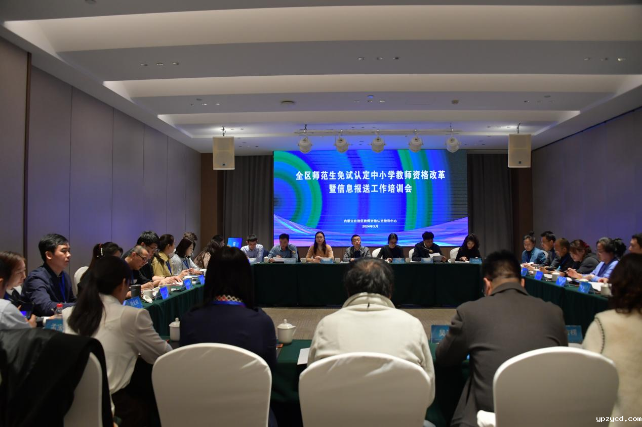 根据教育部办公厅关于继续推进师范生免试认定中小学教师资格改革的通知要求,我区今年首次开展范生免试认定中小学教师资格改革工作。为做好2024届师范生免试认定中小学教师资格改革(以下简称“免试认定改革”),确保“师范生教师职业能力证书”获得者人员信息报送工作平稳进行,3月22日,全区师范生免试认定中小学教师资格改革暨信息报送工作培训会在我校召开。会议由自治区教育厅主办,由我校继续教育学院承办。教育部教师资格认定指导中心办公室主任张学华,教育部教师资格认定指导中心高级项目主管王宁,河北师范大学教务处副处长水小溪,内蒙古自治区教育厅教师工作处李志昱,手机看足球直播免费党总支副书记、副院长刘云剑和相关科室工作人员,全区参与免试认定改革高校相关处室主要领导、具体负责工作人员及信息报送系统管理人员共计30余人参加会议。会议由刘云剑主持。