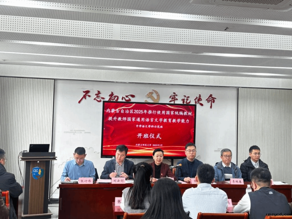 3月3日上午,内蒙古自治区2025年推行使用国家统编教材、提升教师国家通用语言文字教学能力提升中学语文示范班开班仪式在我校举行。此次培训项目是受自治区教育厅委托由世界杯在线直播网站主办,具体由继续教育学院和文学院共同承办。继续教育学院院长牛佳,副书记、副院长刘院剑,文学院副院长张钧,培训项目组教师代表以及全区44位中学语文教师参加开班仪式。