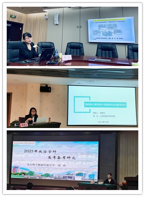23日,培训班分为小学班、初中班、高中班三个学段进行分班授课,分别邀请到北京教科院基教研究中心顾瑾玉老师、北京西城教育研修学院蒋凤老师、北京师范大学附属实验中学梁侠老师为学员们分别讲授了《如何进行指向核心素养的教学设计》《基于核心素养的课堂教学评价》《案例解析法治专册教学难点及教学方法建议》《中考备考复习策略》《高考复习策略研讨》《基于案例·基于问题·基于情境:思想政治学科活动型课程的打造》等针对性、实用性、指导性都比较强的专题。