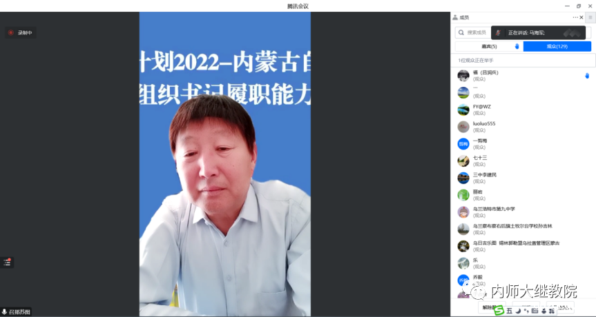 “国培计划(2022)”——内蒙古自治区农村中小学党组织书记履职能力提升研修项目初中组为期六天的线上集中授课阶段结束后,后续将择机开展为期六天的云跟岗。