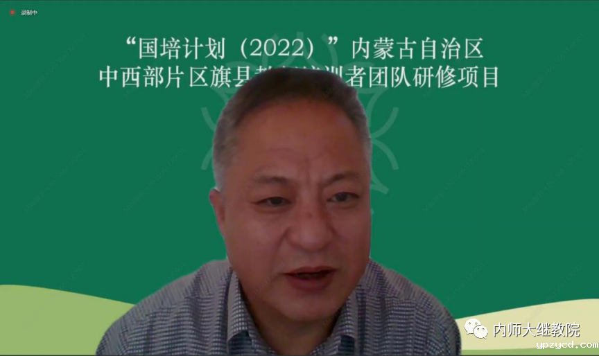 11月14日,由我校承办的“国培计划(2022)”——内蒙古自治区中西部片区旗县教师培训者团队研修项目通过线上形式开班。教育部全国民族教育专家委员会委员、西北师范大学教授万明钢,手机看足球直播免费党总支书记韩彦斌,内蒙古自治区中小学幼儿园教师培训项目执行办公室主任,手机看足球直播免费党总支副书记、院长王利,副院长付丽和,副院长召那苏图出席开班式。开班式由本次培训的项目负责人,手机看足球直播免费党总支副书记、副院长刘云剑主持,本次培训班班主任及本项目五个研修团队的来自治区八个盟市500多名旗县教师参加了开班式。