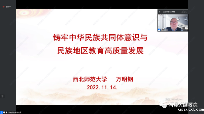 本次线上集中授课阶段于11月14日至23日之间进行,期间邀请了教育部全国民族教育专家委员会委员万明钢教授,北京市教育科学研究院原院长、党委副书记季明明研究员,河北师范大学教师教育学院田宝军教授,教育部国培项目入库专家王富军等区外知名专家学者,以专题讲座的形式分别讲授了“铸牢中华民族共同体意识与民族地区教育高质量发展”“以党的二十大精神为指导,努力构建中小学高质量教育体系”“培训需求调研分析与培训方案研制及培训课程开发”“做新时代的研训师”等十八个专题。