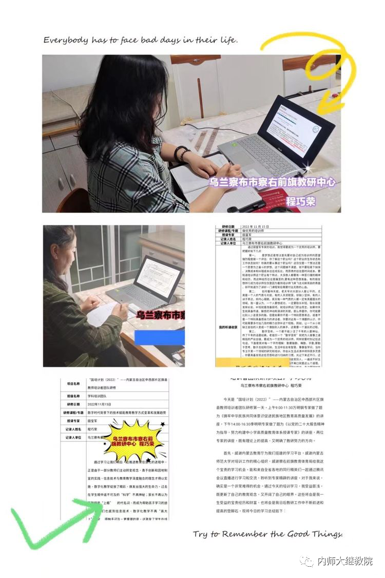 “国培计划(2022)”——内蒙古自治区中西部片区旗县教师培训者团队研修项目为期六天的线上集中授课阶段结束后,后续将择机开展为期8天的云跟岗和30学时的网络自主选学。