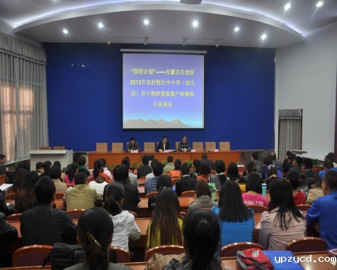 9月25日下午,“国培计划”——内蒙古自治区农村牧区2013年幼儿园、中小学骨干教师置换脱产研修项目培训班开班仪式在我校信息楼学术报告厅举行,来自全区西部6个盟市的250名幼儿园、中小学骨干教师将在我校进行为期四个月的脱产研修。