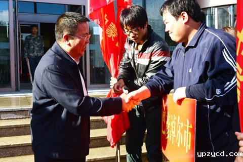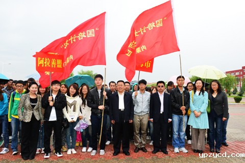 启动仪式结束后,举行了简短的出征仪式,全体与会领导为即将出征的学生授旗。