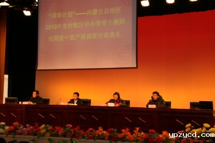 1月9日上午,“国培计划”—内蒙古自治区2010年农村牧区中小学骨干教师短期集中培训开班仪式在世界杯在线直播网站附属中学礼堂隆重举行。自治区教育厅师资管理处处长何燕、我校副校长刘前贵教授、继续教育学院党总支书记金民忠、继续教育学院院长郝保文、继续教育学院工作人员及750名农村牧区中小学骨干教师参加了开班仪式。开班仪式由继续教育学院院长郝保文主持。