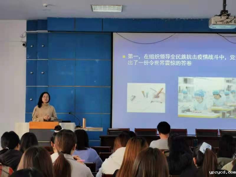 其次,付丽和同志从历史和现实的角度、国内和国外的抗疫对比,着重从家国情怀、民族融合、信仰追求三个方面讲解了中华民族共同体意识的主要表现。讲到“一部中国史,就是一部各民族交融汇聚成多元一体中华民族的历史,就是各民族共同缔造、发展、巩固统一的伟大祖国的历史。”让我们进一步深刻理解了党中央的坚强领导是战胜疫情的定盘星,中国特色社会主义制度是化解危机的法宝,中华民族大团结是解决困难的利器。