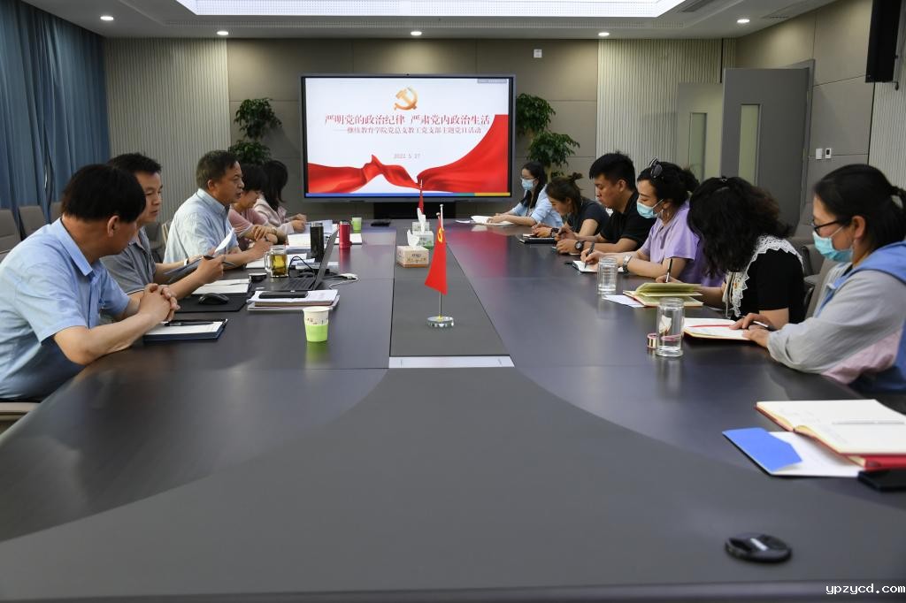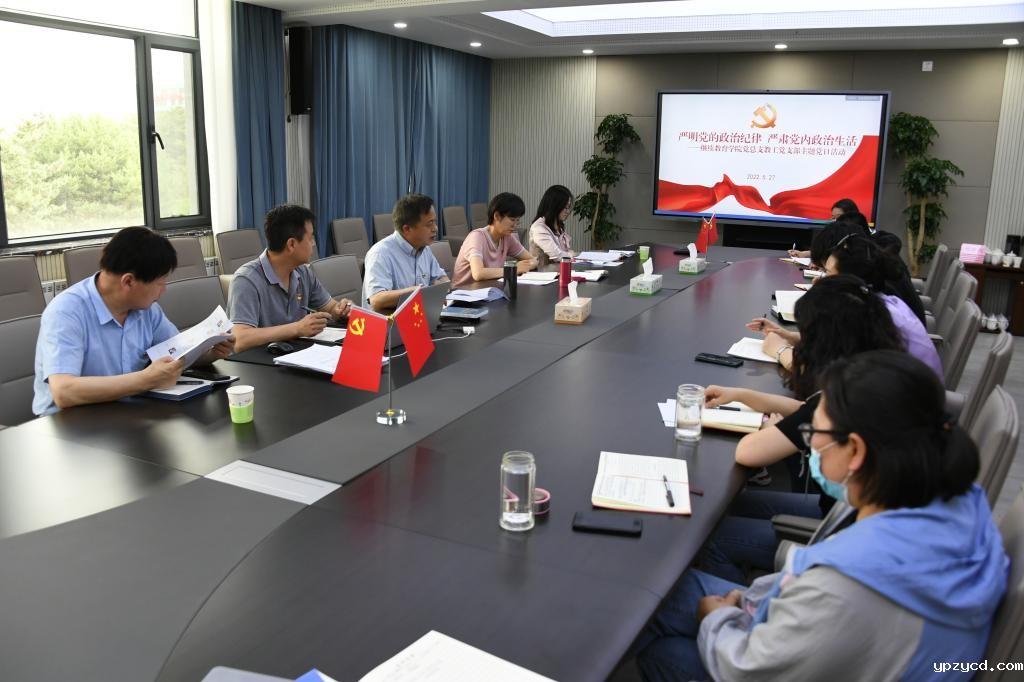 5月27日下午,继续教育学院党总支两个教工党支部联合开展“严明党的政治纪律、严肃党内政治生活”主题党日活动,会议由学院党总支书记韩彦斌主持,学院领导班子及全体党员参加会议。