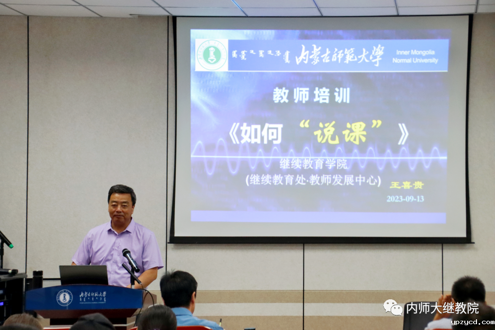 为提高我校青年教师的教学水平,进一步夯实青年教师的教学基本功,建设一支专业过硬、素质优良的青年教师队伍,9月13日,我校继续教育学院(继续教育处、教师发展中心)邀请王喜贵教授在赛罕校区文史楼三楼学术报告厅为我校教师开展了题为《如何“说课”》的专题培训。来自我校各学院、各部门100余位教师参加了培训。