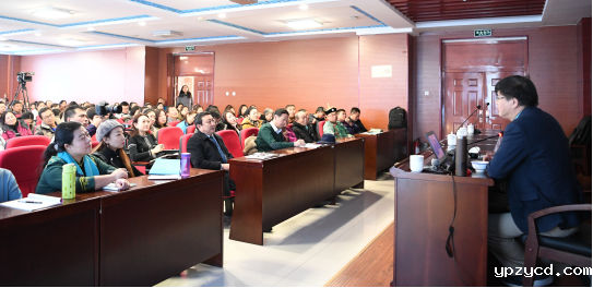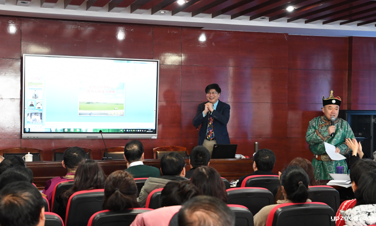 “三十年前,家乡是一个概念,别的没有;二十年前,家乡是我当年长大的院落和为数不多的亲人;十年前,家乡已成为我的牵挂和祝福;而现在,我才明白,家乡是情怀、是责任,更是草原人民的呼唤……”。天气虽冷,台下早已座无虚席,在讲座即将开始时,主持人用幽默的言语真诚地欢迎岳晓东博士“回家讲学”。